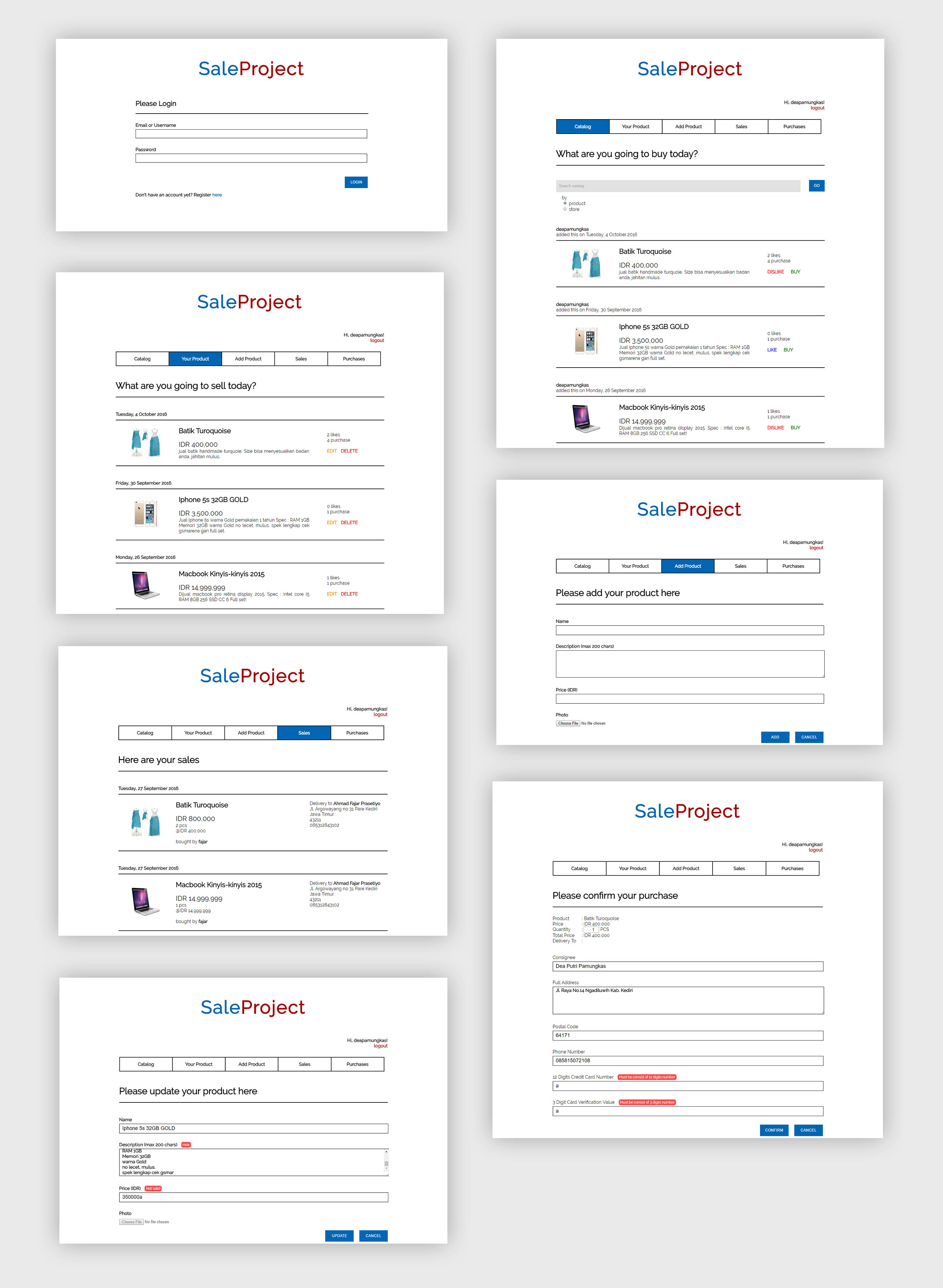 Sale Project is an e-commerce website that consists of buyer-side and seller-side with the feature login, logout, and register. The buyers can make a purchase of products. While the Sellers can upload their products including its photos and edit them at one time or maybe remove it.